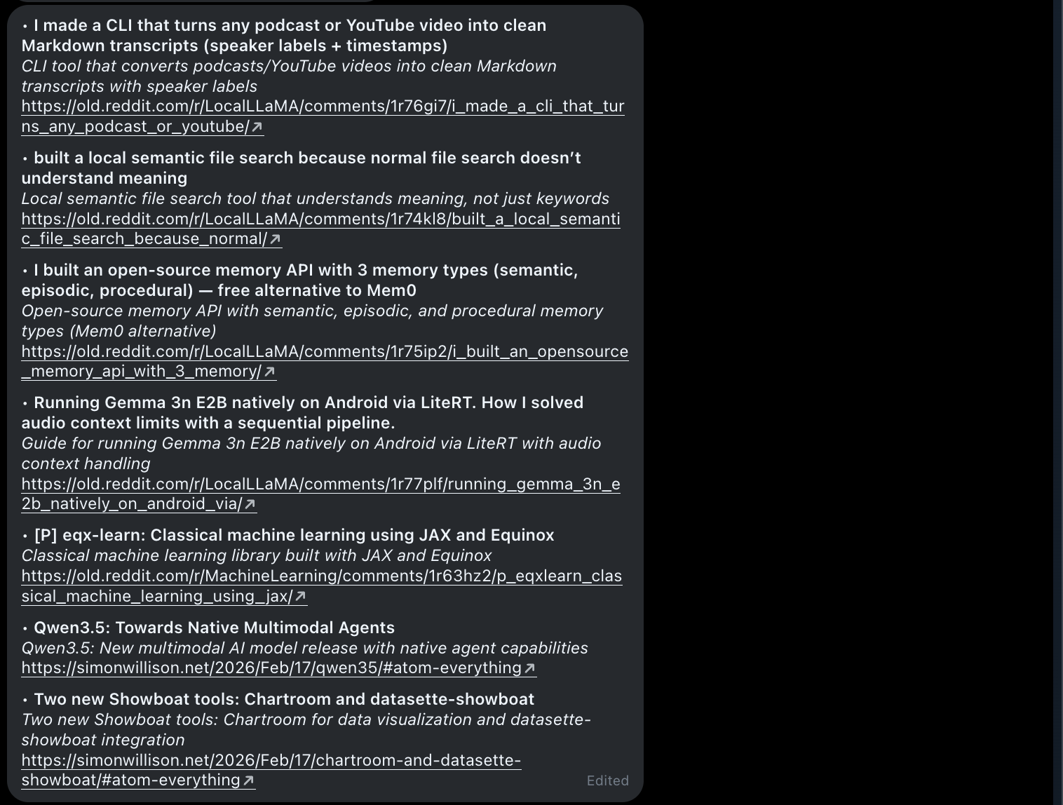 I scrape info from specific subreddits, substacks, Hackernews, etc.